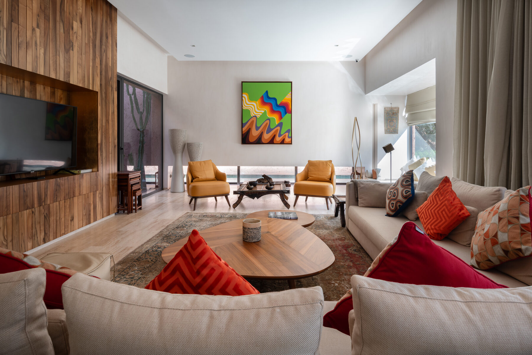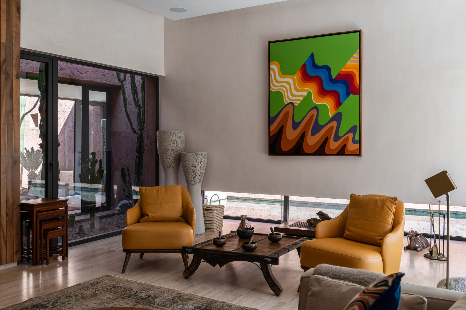 This lovely villa has been elegantly decorated and furnished by its owners with Italian designer furniture, magnificent paintings and an enticing collection of Moroccan art. The villa is designed for your well-being and boasts four suites with hot/cold floor and ceiling air conditioning as well as independent bathrooms.