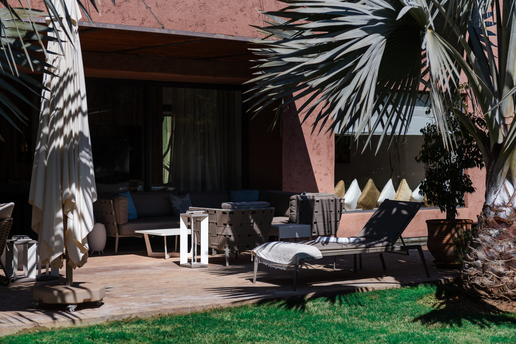 Our concierge service, always available, is happy to handle any logistical hassle for you, such as restaurants booking, on site care and pampering, golf bookings, camel, quad or 4wd excursions, private visits of the medina, and much, much more, for you to focus on the most important aspect of your stay: pleasure.