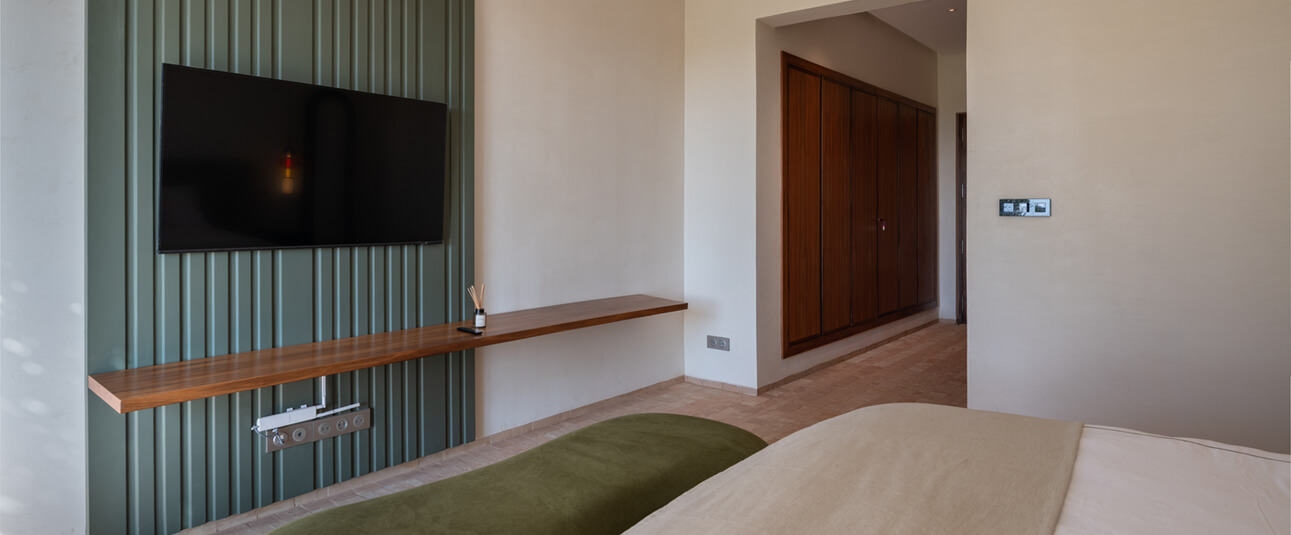 La villa dispose de 4 chambres confortables : trois avec lits king size (200 x 200) et une avec deux lits simples (100 x 200). Entièrement climatisée et dotée d’un chauffage au sol, elle assure un bien-être en toute saison. Une salle de massage privative complète cette expérience de détente.